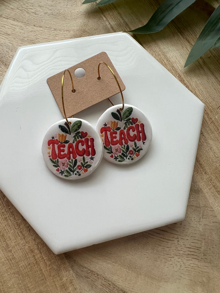 These are lightweight handmade clay earrings with silver nickel free hoops. Because they are handmade, please allow for slight variations and imperfections.